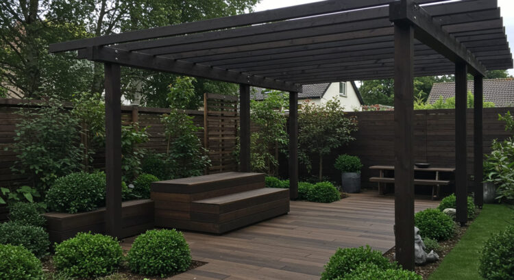 Um pergolado cria um cantinho perfeito para relaxamento.
