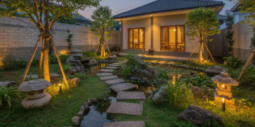 - Ilhas de Pedra em Meio ao Jardim: Crie pequenas plataformas de pedra nos pontos de destaque do jardim e conecte-as com trilhas de terra batida ou grama aparada. Foca o gasto apenas onde os pés pisam com mais frequência.