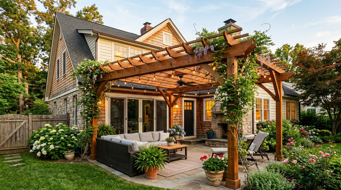 O pergolado é uma ferramenta arquitetônica versátil que vai muito além da simples função de fornecer sombra. No paisagismo, ele atua como um divisor de ambientes sutil e elegante, criando zonas distintas sem a necessidade de paredes fechadas que bloqueiam a visão ou a circulação de ar.
