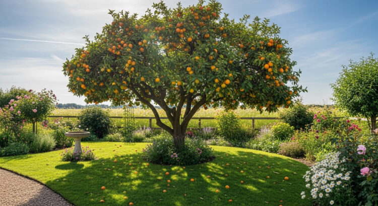 Luzes embutidas ao redor da árvore criam um efeito discreto e elegante. Essa solução é ideal para jardins modernos e minimalistas.