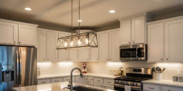 Escolher luminárias que combinem com o estilo da cozinha ajuda a criar um espaço mais elegante e bem planejado.