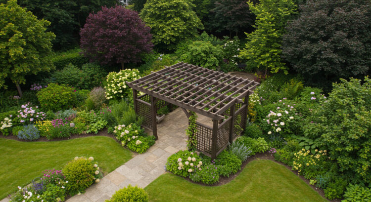 A escolha do material define não apenas a estética, mas também a durabilidade e a funcionalidade do pergolado, garantindo que ele seja um elemento permanente e valorizado do jardim.