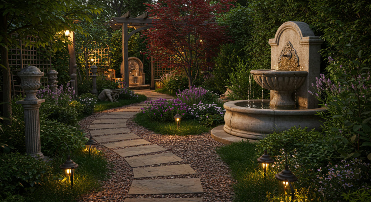Mesmo projetos simples podem incluir fontes compactas. Uma pedra grande pode servir de base para uma fonte de água ou mini cascata, agregando movimento e som relaxante ao quintal.