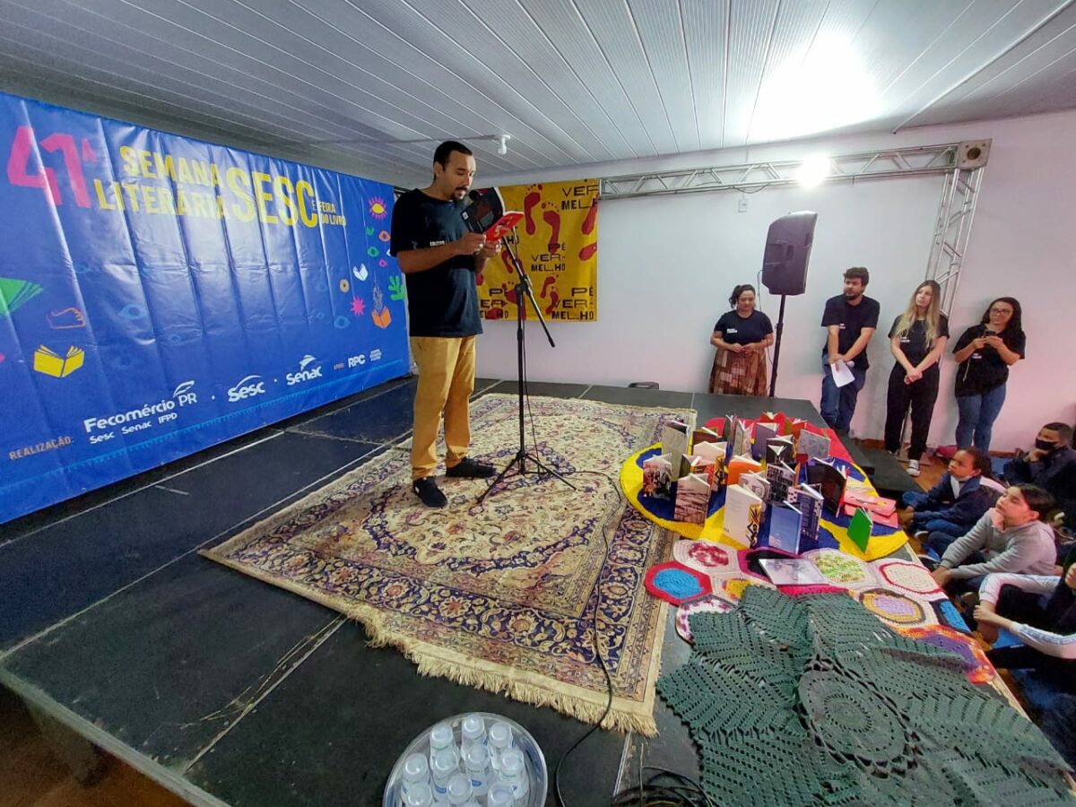 Segundo ela, o coletivo levou uma minibiblioteca com livros de escritores marginais. “Deixamos à disposição para o público pegar, folhear, declamar os poemas durante o sarau. Ao longo desses dias, tivemos uma experiência bem legal de ter outras pessoas declamando textos dos poetas de Maringá que compõem o nosso livro ‘Poesia é o Conselho’, lançado neste ano. Ouvir esses poemas em outras vozes foi muito gostoso!”, acrescenta.