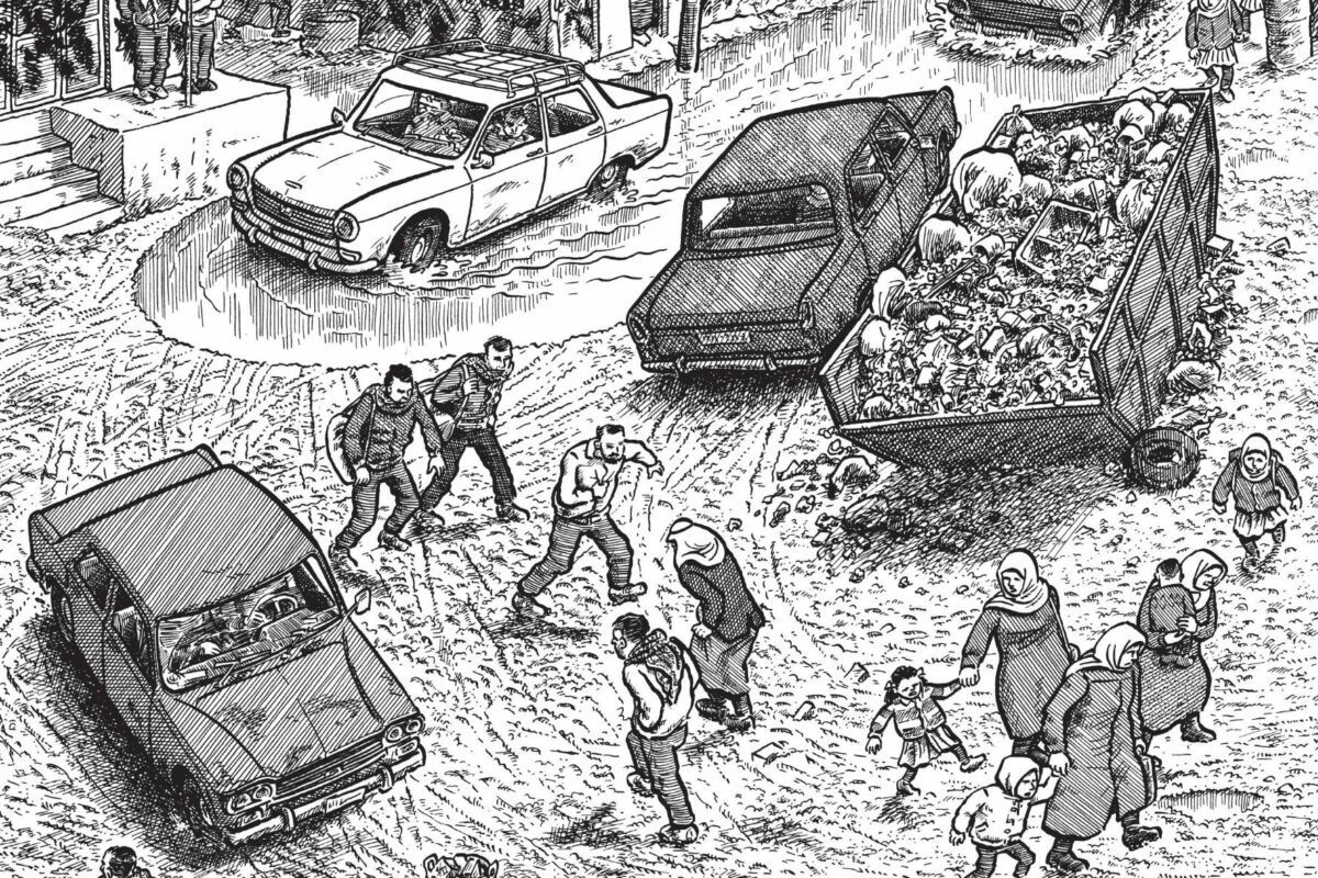 É o caso, por exemplo, de “Palestina – Uma nação ocupada” (1993), que virou o famoso álbum produzido pelo jornalista e quadrinista Joe Sacco, ganhador do American Book Award em 1996. Ou mesmo “Duas décadas de uma guerra sem fim” (2021), página roteirizada por Rodrigo Turrer e desenhada por Marcos Müller para O Estado de S.Paulo. Em ambos, uma reportagem inserida no campo do chamado Jornalismo em Quadrinhos (JHQ).