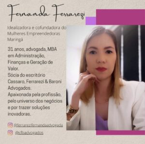 O grupo Mulheres Empreendedoras de Maringá, idealizado pelas fundadoras Fernanda Ferrarezi, Karen Arceni, Mariane Dalpizzol e Vivian Eik começou este ano e já conta com a participação de dezenas de integrantes. As belas reuniram mais de 40 mulheres nesta semana para uma grande reunião na Sierra Móveis, com direito à palestra da jornalista, comunicadora e mentora Juliane Guzzoni.