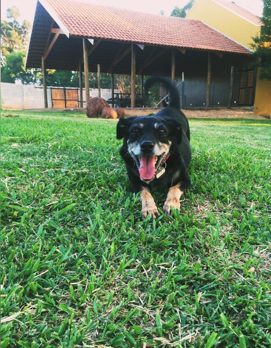 “Eu tenho 12 anos. Comecei a ir na creche do Paraíso do Mascote com meu irmão. Ele é bem mais novo e ama correr. Eu gosto de brincar com bolinha e de descansar em baixo da minha bananeira preferida.  Ainda bem que no Paraíso do Mascote os tios observam tudinho e sabem que tipo de brincadeiras a gente prefere, ou pode fazer. Apesar de eu não aparentar, eu já sou uma senhorinha, então sempre tem um cantinho reservado para minhas sonecas. Meu maior sonho é tirar umas férias e passar uns dias no hotel do Paraíso do Mascote.  Já imaginou dormir e acordar naquele lugar bonito e bom pra cachorro?”