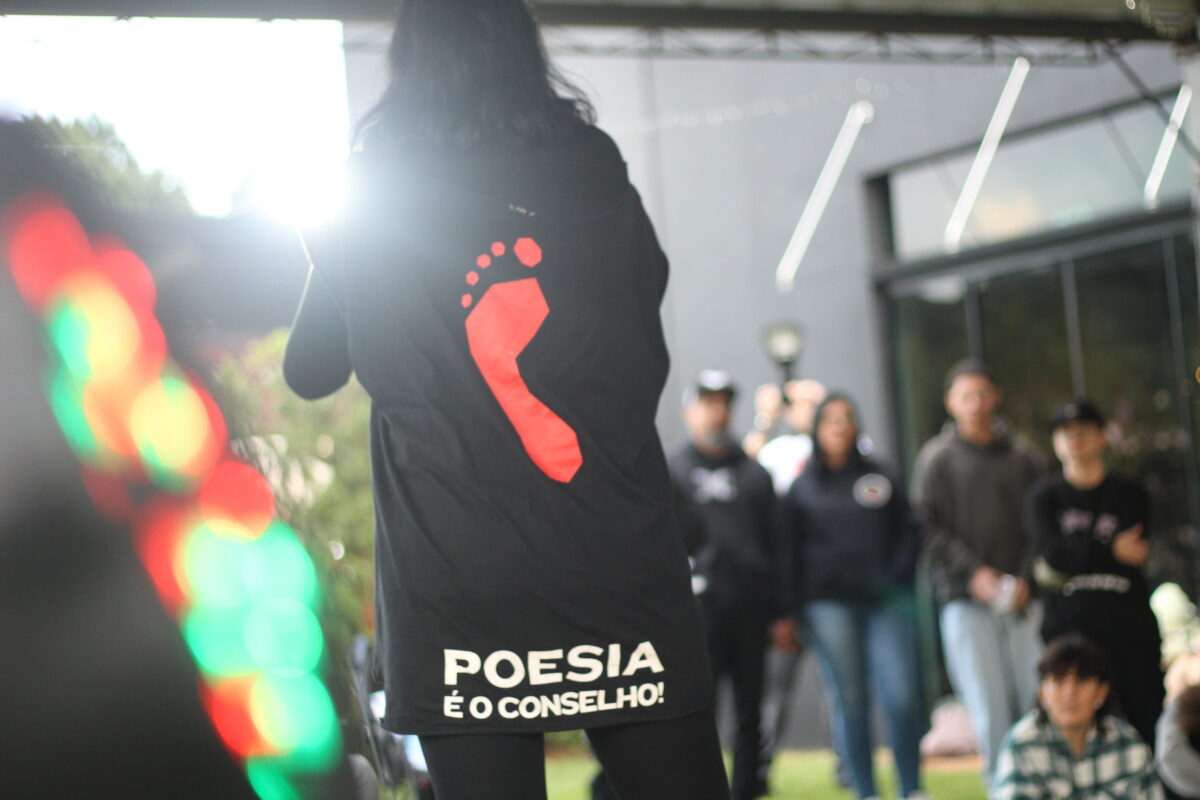 “Aí, surgiu o convite e ele falou: ‘gente, eu quero que a gente tenha outros eventos envolvendo a cultura de rua também com as artes da palavra’. Veio esse convite por parte dele para a gente trazer o Slam e a Batalha de Rima”, recorda a produtora.