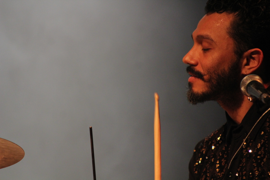 “Tem muitos instrumentos e muitos sons diferentes ao mesmo tempo”, explica o batera, em relação ao trabalho em estúdio. Por exemplo, o contrabaixo é sampleado e utilizado em apresentações ao vivo como as que ocorreram em Maringá.