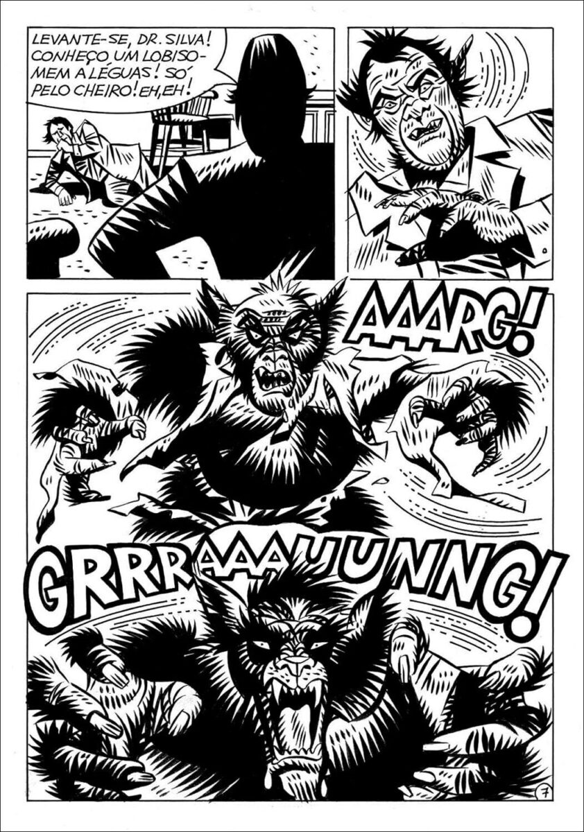 Por sua vez, “Lobisomem integral” reúne o trabalho de Gedeone Malagola (1924-2008) e Rodolfo Zalla (1931-2016). As histórias escritas por Gedeone e ilustradas entre 1968 e 1970, por esse argentino naturalizado brasileiro finalmente foram reunidas em uma edição de 180 páginas, com ensaio biográfico de Toni Rodrigues, maior especialista na obra de Zalla e seu assistente nos tempos da D-Arte.