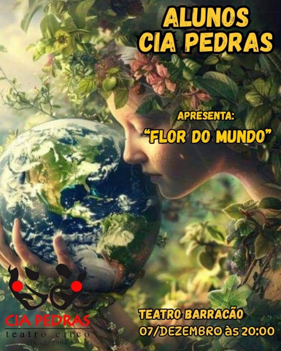 “Flor do Mundo” (Espetáculo de circo): Em meio a fumaça e o silêncio, a flor do mundo corre atrás de suas próprias pétalas! E o ser humano esquece que a natureza sob seus pés também sangra e entre acrobacias no ar, no chão, sorrisos e a beleza singela do circo, descortinaremos o véu de nossas ações, porque cuidando do mundo, cuidaremos de nós!