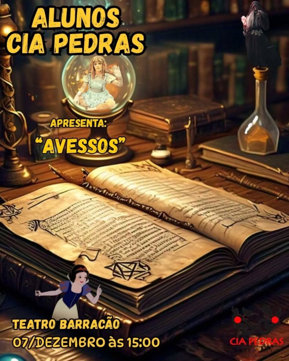 “Avessos”: Cansada de finais previsíveis, uma criança rasga as páginas do “era uma vez” e costura, com fios de imaginação: lobos que ficam bons, princesas não tão gentis e algumas personagens seguem o caminho do jeitinho que são e assim neste caos encantado, nasce uma história do avesso.