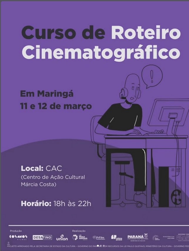Em Maringá, o público interessado em contar histórias poderá fazer o Curso de Roteiro Cinematográfico. É uma oportunidade única para estruturar suas ideias.