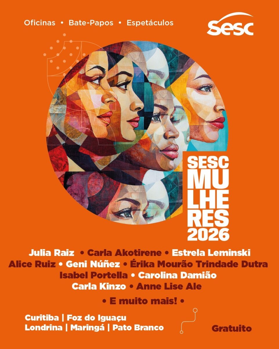 E mais uma atividade em 13 de março, das 14h às 17h: “Chegar ao amor pela sujeira”, com Julia Raiz, dentro da programação do Sesc Mulheres 2026. A oficineira é escritora, tradutora e agitadora cultural, com prática em ações performativas em literatura. Acesso gratuito e classificação livre. Inscrições: AQUI