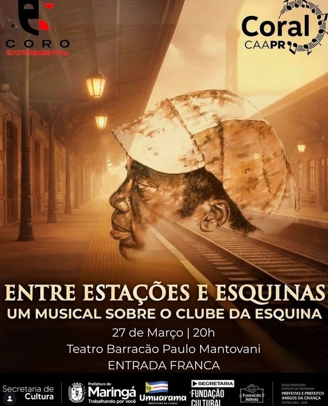 O Coro Experimental e o Coral CAAPR de Umuarama apresentam nesta sexta-feira, 27 março, “Entre Estações e Esquinas: um musical sobre o Clube da Esquina”, em Maringá.