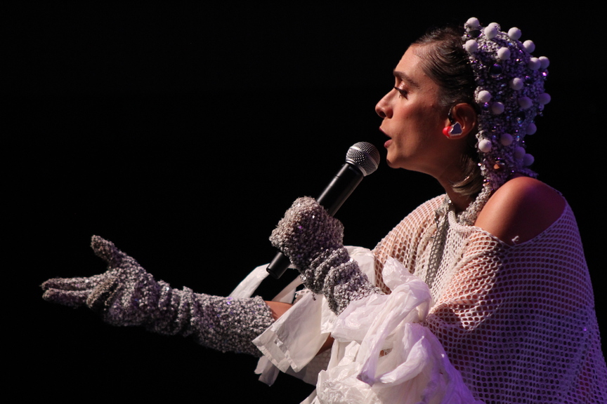 Primeira vez da artista em Maringá. “O Paraná se tornou uma surpresa muito boa. Eu vim para Curitiba várias vezes e tive uma troca muito especial, é um público muito legal. Me surpreendeu, pois é um público curioso, interessado. Eu não conhecia muito o Sul [do Brasil], foi muito legal. Depois, eu cantei em Foz do Iguaçu”, contou, entre um número e outro.