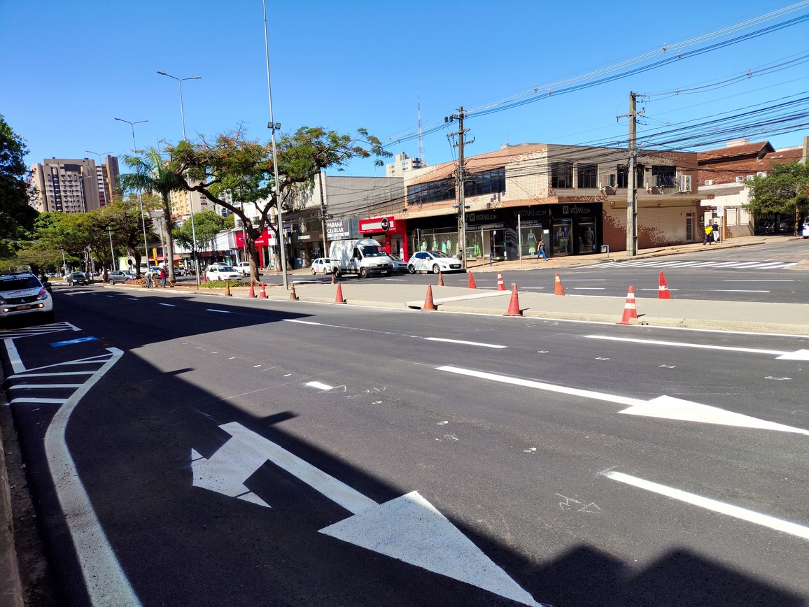 A fim de melhorar o fluxo de veículos no local, as equipes da Prefeitura criaram uma pista de desaceleração para os veículos que realizam a conversão à direita na São Paulo.