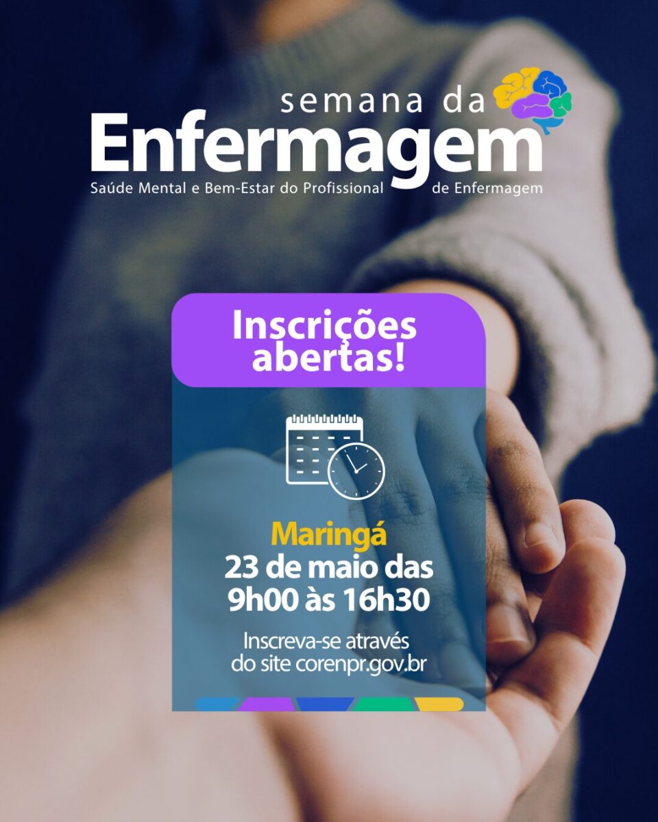 O Conselho Regional de Enfermagem do Paraná (Coren PR) abriu oficialmente as inscrições para a edição 2025 da Semana da Enfermagem em Maringá. O evento, que traz como tema “Saúde Mental e Bem-Estar do Profissional de Enfermagem”, será realizado no dia 23 de maio, das 9h às 16h30, no Centro Universitário Ingá – UNINGÁ.