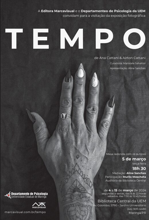“A fantasia de congelar o tempo por meio da fotografia produz efeitos curiosos neste livro e na exposição, pois o que se revela é o tempo como movimento e transformação. Afinal, estar vivo é estar submetido ao tempo, ao jogo dos começos e dos fins,” escreve na apresentação a psicanalista Aline Sanches, professora do Departamento de Psicologia da Universidade Estadual de Maringá. “Mãos carregadas de marcas do tempo, este tempo que nos cativa e que tentamos de alguma forma reter”, registra a artista visual Maristela Salvatori, professora do Instituto de Artes da UFRGS e curadora da exposição que ficará em cartaz na Biblioteca Central da UEM de 4 a 15 de março de 2024.