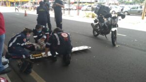 Obs: com o impacto a vítima perdeu dois dentes, mas está consciente e respondendo as informações dos socorristas.