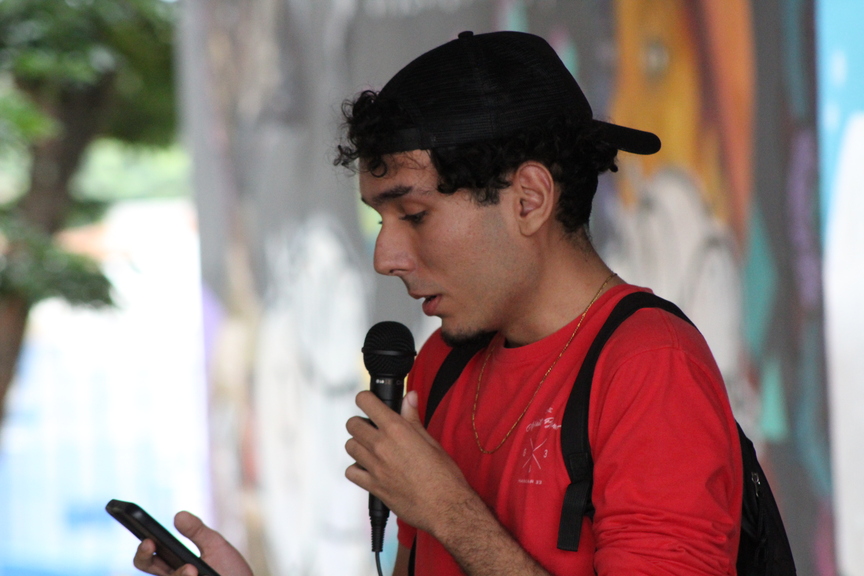 A 45ª edição do Slam Pé Vermelho, o campeonato de poesia falada de Maringá, ocorreu na tarde deste domingo, 27 abril, no vão livre do restaurante popular da Vila Olímpica.