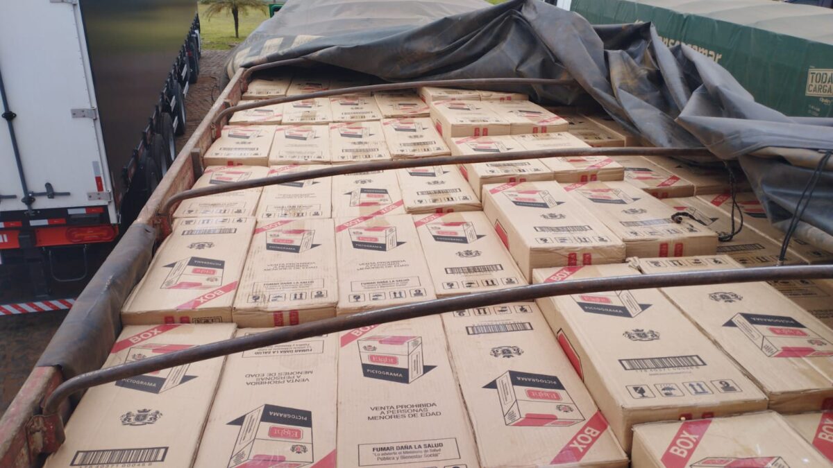 Durante fiscalização, os policiais abordaram um caminhão Scania/T112 H com semirreboque Randon, por volta das 9h50, nas proximidades do Posto Matsuda. “O condutor, de 50 anos, informou inicialmente que a carga seria de milho, conforme documento fiscal apresentado. No entanto, ao ser solicitado que retirasse a lona do veículo, confessou que transportava cigarros oriundos do Paraguai”, diz a PRF.