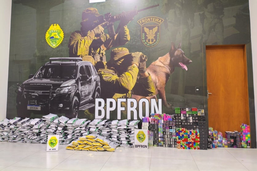 Uma ação conjunta do Batalhão de Polícia de Fronteira (BPFron) e do 25º Batalhão de Polícia Militar (25º BPM) na noite desta segunda-feira, 23, na PR-323, em Umuarama, foi apreendida uma carga composta por inseticida e cigarros eletrônicos avaliada em cerca de R$ 578 mil. Todo o material era contrabandeado do Paraguai.