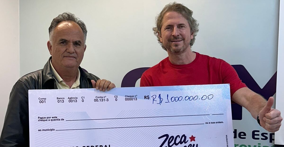 O prefeito de Sarandi, Carlos de Paula, recebeu do deputado Zeca Dirceu um cheque simbólico do valor do repasse federal para a área da saúde Foto: Divulgação