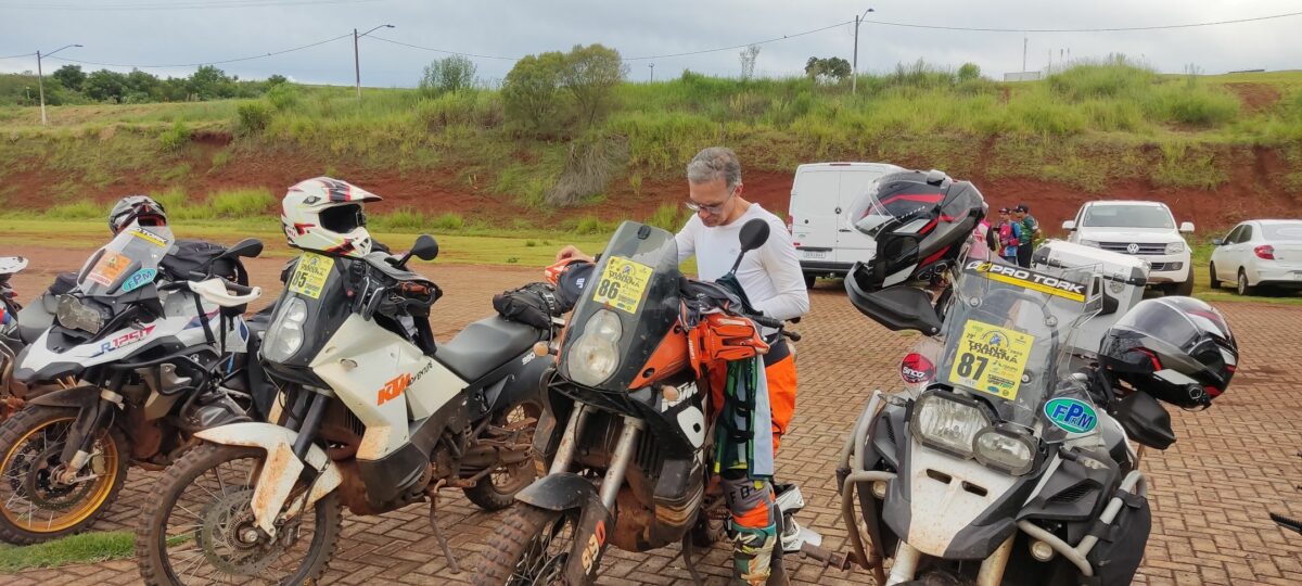 Pela manhã desta quarta-feira, eles largaram na Big Trail 990 (moto idealizada para o famoso Paris-Dacar, típica para provas pesadas) às 8h30, enfrentando um “areião” de barro, pois tinha chovido muito. “Foi até bem divertido. Bem desafiador passar. Conseguimos passar sem tombo, nem nada. Muito feliz com o evento”, diz João, em entrevista a O Maringá.