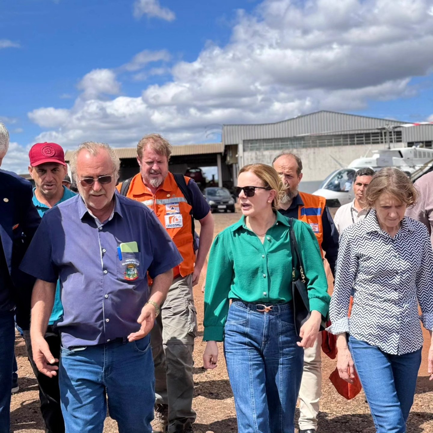 Gleisi esteve em Rio Bonito do Iguaçu ao lado do ministro interino da Saúde, Adriano Massuda, do diretor do Centro Nacional de Gerenciamento de Riscos e Desastres (CENAD), Armin Braun, e do diretor de Coordenação da Itaipu Binacional, Carlos Carboni. Eles acompanharam o trabalho das equipes da Defesa Civil e das autoridades locais no atendimento à população.